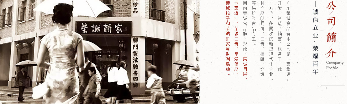 廣東榮誠(chéng)食品有限公司是一家集研發(fā)、生產(chǎn)、銷售于一體的現(xiàn)代化食品企業(yè)。主要生產(chǎn)月餅、粽子、潮膳、曲奇、雞蛋卷、鳳梨酥、蛋黃酥、腐乳餅、面包、蛋糕等一百多個(gè)食品品種。榮誠(chéng)深耕食品行業(yè),在產(chǎn)品研發(fā)、品牌文化、產(chǎn)品質(zhì)量、包裝創(chuàng)新、人才團(tuán)隊(duì)、營(yíng)銷網(wǎng)絡(luò)等方面逐漸建立起核心競(jìng)爭(zhēng)優(yōu)勢(shì),旗下創(chuàng)立了榮誠(chéng)月餅、老家潮汕、榮誠(chéng)和粽、榮誠(chéng)餅家、榮誠(chéng)曲奇、至愛(ài)優(yōu)品等幾大品牌,品牌美譽(yù)度連年提升,其中“榮誠(chéng)月餅”已躋身國(guó)內(nèi)月餅行業(yè)前茅,產(chǎn)品暢銷全國(guó)各地。